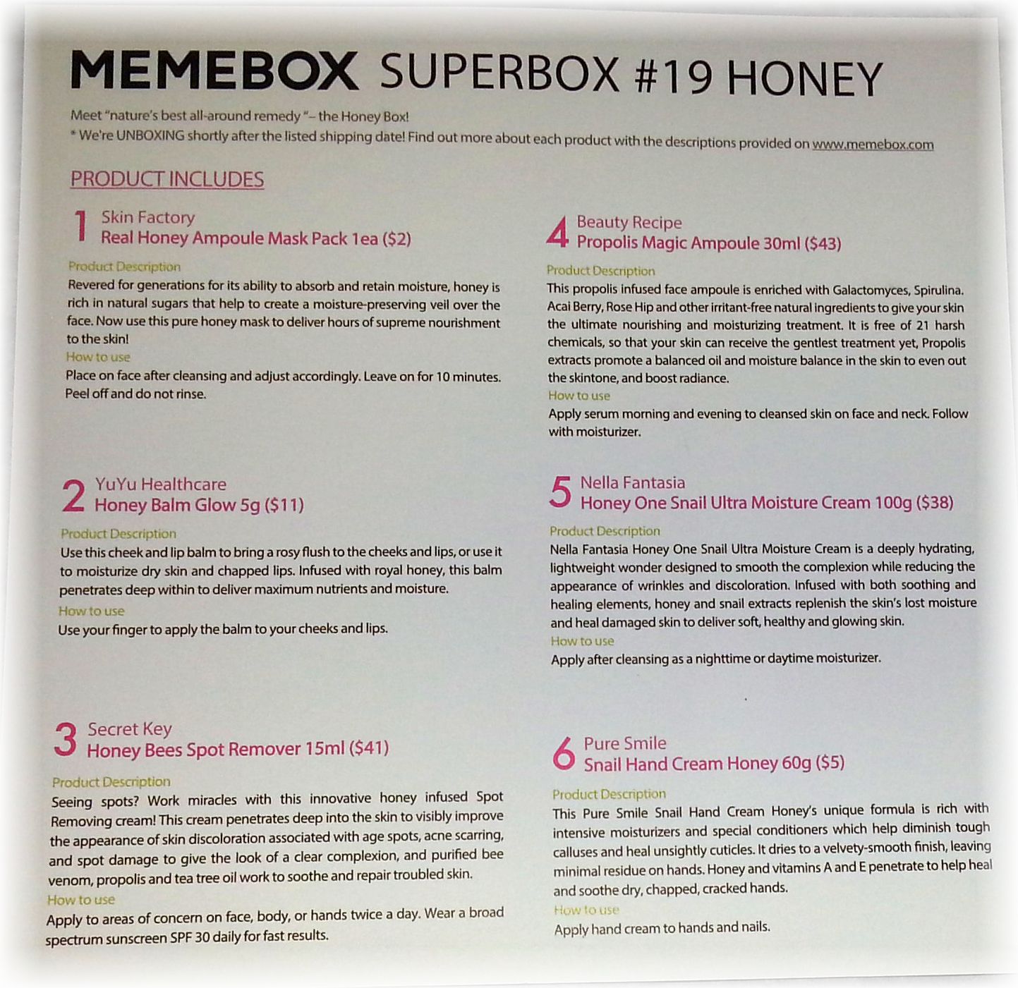 This is the description from Memebox: