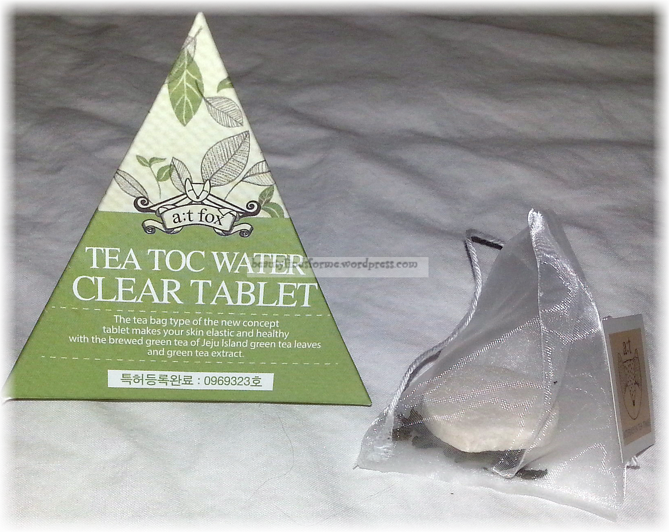 a;t Fox Tea Toc Water Clear Tablet This product was in previous Memeboxes, but that was before my time 😀 This is a new product to me and this is another ‘make your own cleansing water’ item. I never really made my own cleansing waters until Memebox! This contains green tea extracts from the island of Jeju. It is supposed to keep your skin healthy, smaller pores, reduce swelling and puffiness. Memeshop sells this in a box of 8, so I do not consider this “full size” as this is for a one time use. Full Size 4g Value $2.00