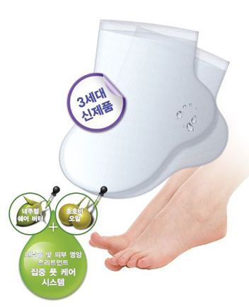 How To Use:   Wear foot care mask after washing your foot with warm water. Use the mask by putting feet inside the double-layered felt rich with essence. After applying for 20 minutes, take off the mask and spread the remaining essence through out entire feet. Allow few minutes to absorb the essence without washing, after taking off the mask