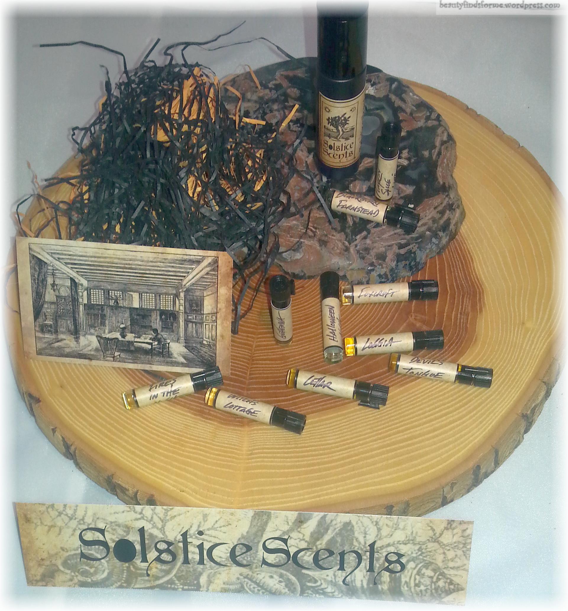 I do love the way Solstice Scents adds these wonderful “postcards” in the orders with beautiful drawings and artwork. Their website is full of these wonderful drawings and you should just take a look at them. I wish they would sell some of them as prints or actual postcards. The print drawings here are NOT from their website, however.