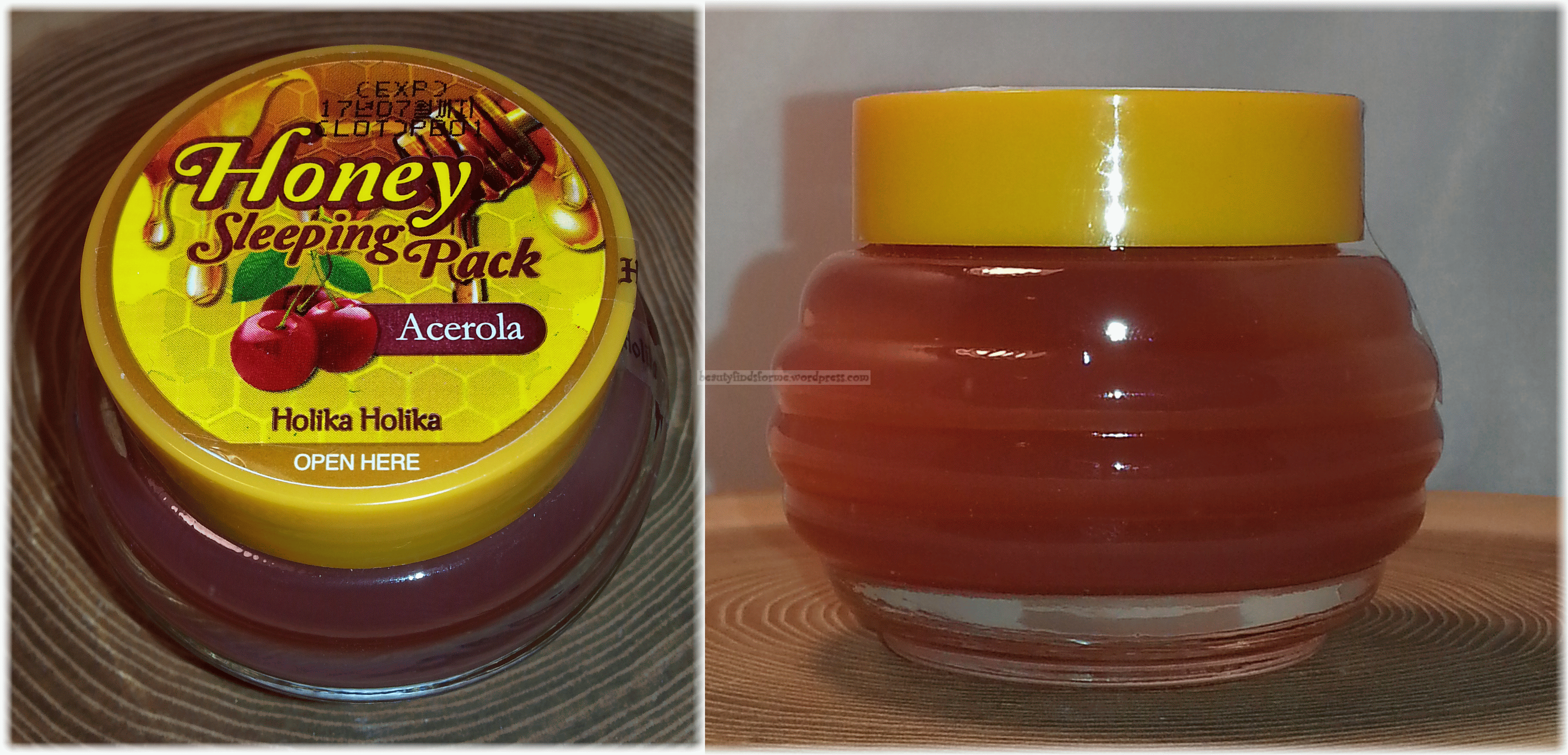 Holika Holika Honey Sleeping Pack Acerola This was one of our “choices” in our bag ~ we could choose from Canola, Blueberry or Acerola. I chose Acerola and Beauteque had sent me Canola, which I already own. They sent me out my Acerola replacement, so I am pretty pleased now. A sleeping pack is a intense moisturizing cream/gel that is applied to your face as the last step in your skincare routine before going to bed. It locks in all of the nutrients and creates a moisture barrier, so that your skin will be working on healing and rejuvenating while you sleep! You do not wash it off until the morning, when you wake up. This is another product I have used ~ the Holika Holika Honey Sleeping Pack ~ but in the Blueberry version ~ in fact, I am on my second jar of the blueberry since I purchased my first one last summer. This is one of my top choices for a honey sleeping pack. It is not sticky, absorbs quickly ~ in fact, I usually let it dry and then apply again before I go to bed. The jar is adorable, in the shape of a little honey pot 🙂