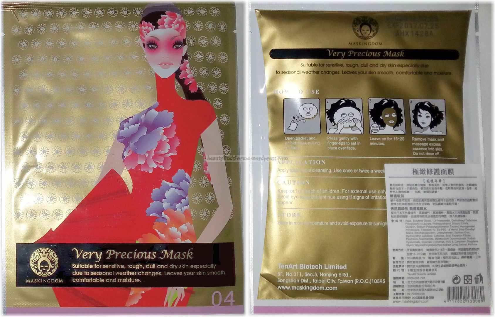 MasKingdom Very Precious Mask Another mask from the Metro series and this mask has snail slime in it, which is good for all skin types, including sensitive skin.  This is  repairing mask will leave your face smooth, soothed and moisturized.   This is the 04 mask in this series and just like the 02 mask, it is good for for all skin types and the following issues: