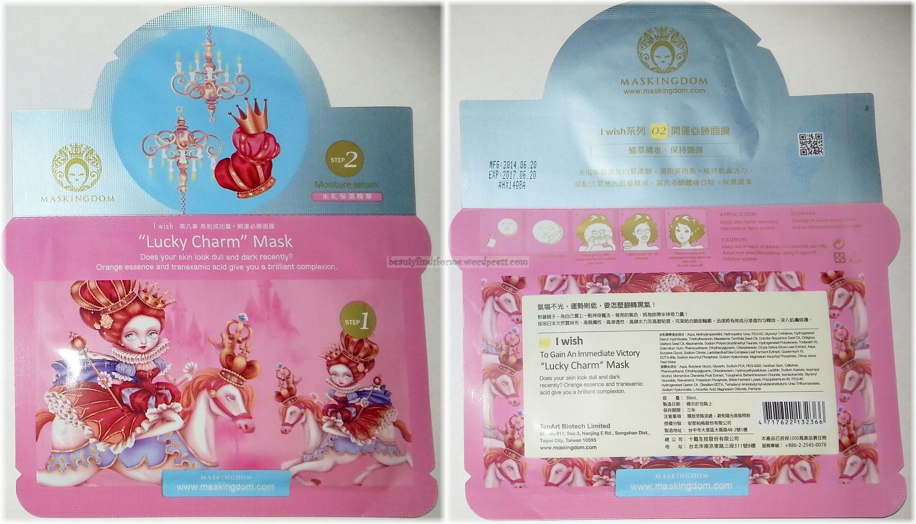 MasKingdom 2 Step “Lucky Charm” Mask  The “I Wish” series of masks from MasKingdom seem to all contain bitter gourd and resveratrol as two of their ingredients.  However, each mask in this series has a different purpose, so there will be different ingredients that they focus on.  The Lucky Charm mask has orange fruit essence ~ high in Vitamin C and is an excellent antioxidant and anti-aging ingredient ~ and  tranexamic acid, which is skin barrier repair ingredient and helps skin recover from any damage as well as reducing hyper-pigmentation.     I do not see tranexamic acid in the ingredient list, so that is weird.  Unless tranexamic acid is going by another name here.  However, there is niacinamide in here, so that will be a skin brightening agent and evens out skin tone.  Value $6.00