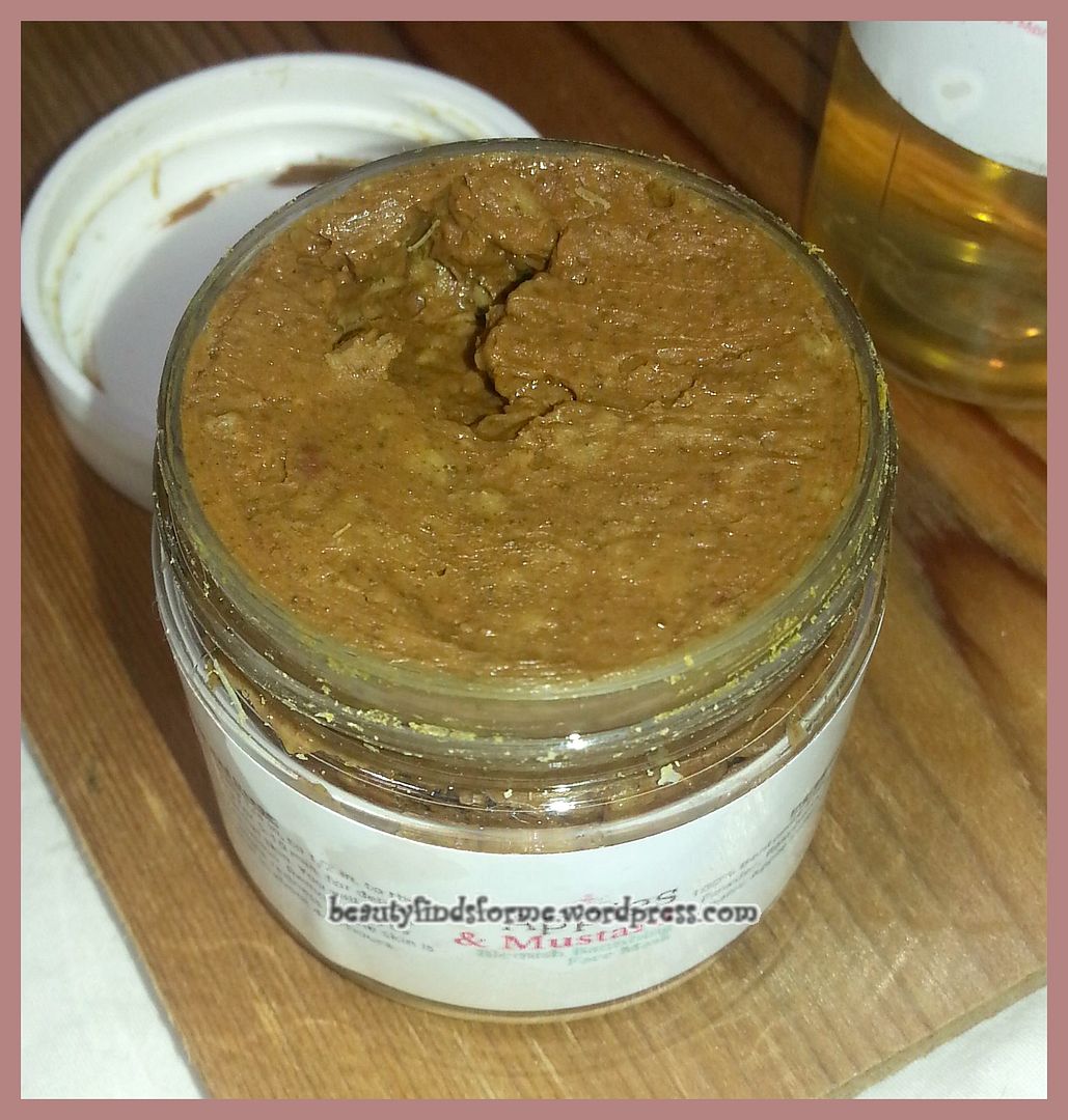 Apples & Mustard Blemish Banishing Face Mask  This was the sneak peek that I saw and I nearly jumped with joy when I saw it.  I love the ingredient list with this product and when you open up this jar, yep, you are hit with the scent of  apple cider vinegar!   Now, I am strange ~ I love that scent.   This is a thick, dense mask, made with clay, turmeric, raspberry roots and apple cider vinegar.  I am very familiar with the benefits of clay to absorb oils and detox your skin, but turmeric is fairly new to me in skincare (I am familiar with it as a food spice!)  Turmeric has antiseptic and antibacterial properties which help fight blemishes and breakout.  It will also help in the fading of acne scarring (yes!) and inflammation, as well as reducing the oil production.  I did try this out this morning, as I am trying to get reduce the appearance and fight back that chin zit ~ I used this as a spot treatment and it felt warm and tingling, but nothing uncomfortable.   I was able to leave it on my face for 20 minutes without discomfort and then rinsed it off.  Turmeric is yellow and don’t be surprised when you rinse off your face and the water is a yellow-orange. That is normal .  I will say this, my chin zit was not as red as before and it did reduce the swelling.  I did not experience any redness after I rinsed this product off.  I am actually going to see what happens if I leave this on overnight and if it will zap this zit completely.   I have to say I am very impressed by this mask so far!  Full Size 2 oz RV $30.00