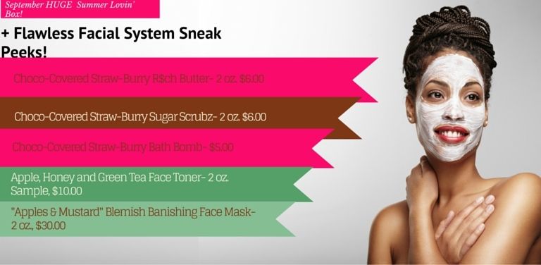 This month’s theme is “Summer Lovin’ Box”  and it also included TWO Flawless Facial System products!  The new scents in September’s box are a marriage of their best scents ever and I really am so happy with this box!