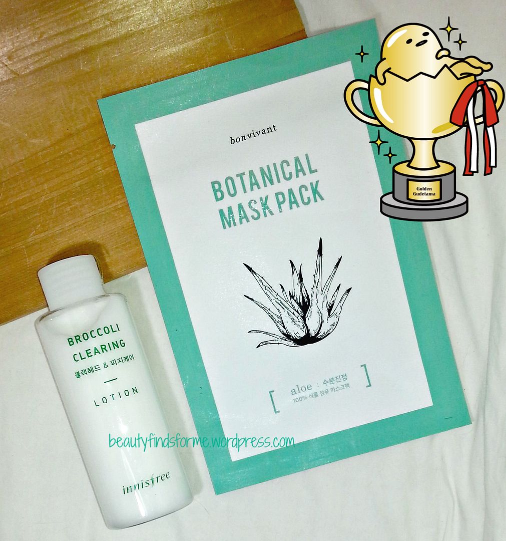 Bon Vivant Botanical Mask Pack Soothing & Hydrating Aloe This was a freebie and it was either the aloe version or the Pore Tightening & Sebum Control Mint Tea Tree. Between the two, I love the Aloe much more. RV $2.00 This is my original review on this mask