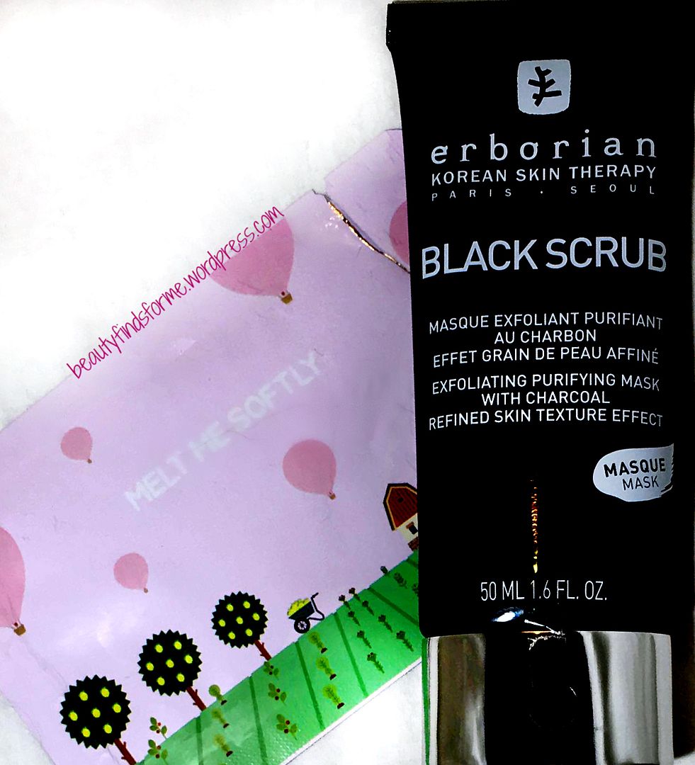 Erborian Black Scrub Mask Description: Formulated with Charcoal powder, known in Korea for its mattifying properties, and cotton micro fibers, BLACK SCRUB is a triple-action exfoliating purifying mask. This fresh gel helps to rid skin of impurities, eliminate dead cells and absorb excess sebum, for a mattifying effect. BLACK SCRUB helps to refine skin’s texture and reduce shine, for skin that feels purified and smoother, and looks visibly more luminous, with a matte finish.