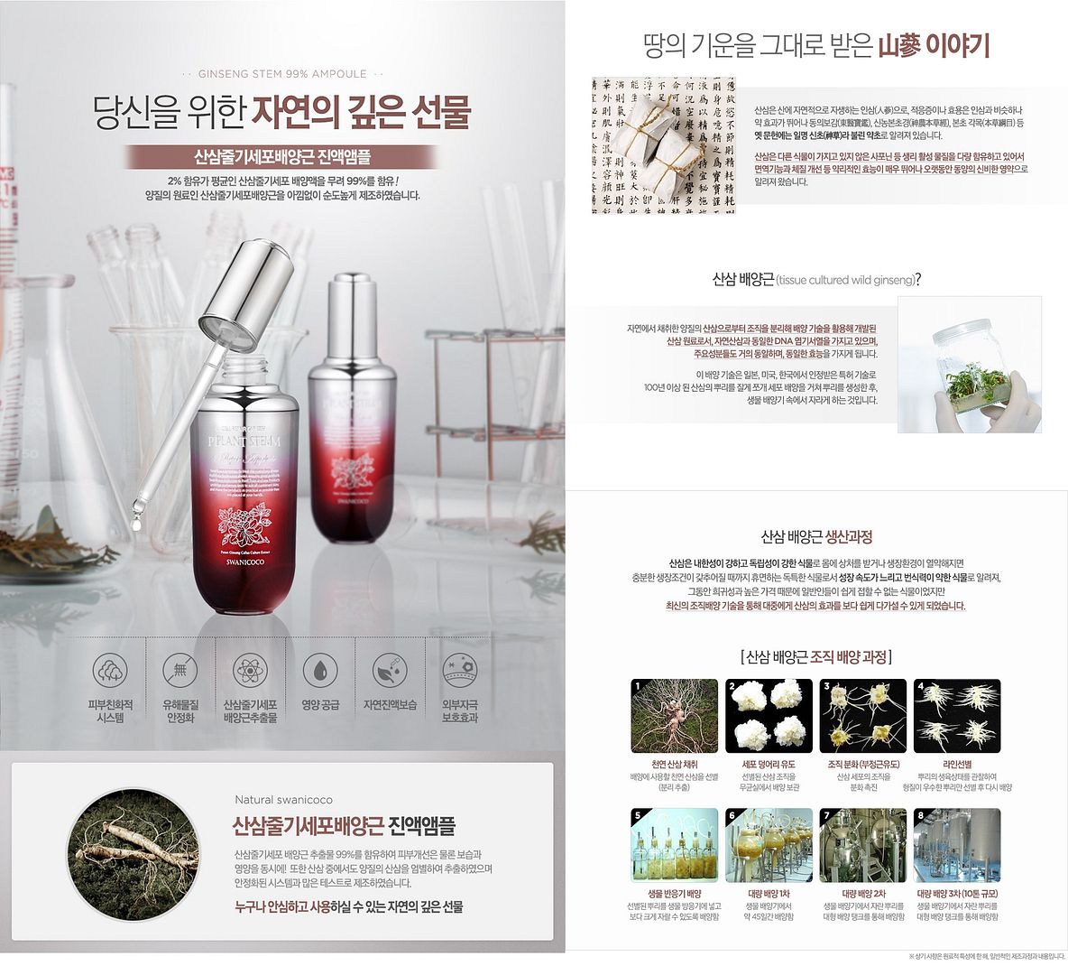 But what is Tissue Cultured wild ginseng? According to Swanicoco, using the raw material of wild ginseng, they use culture technology to separate the tissues. Tissue cultured wild ginseng has the same DNA sequence as naturally grown ginseng, and they have the same benefits. This cultivation technology was patented in the Japan and the United States and it divides the roots of 100 year old ginseng into cell cultures to produce new roots, growing them in an incubator. As natural wild ginseng has a low growth rate, weak fertility and needs optimal growing environmental conditions, this technology allows cosmetic companies to produce ginseng at affordable prices. This ampoule contains 99% of tissue cultured wild ginseng.