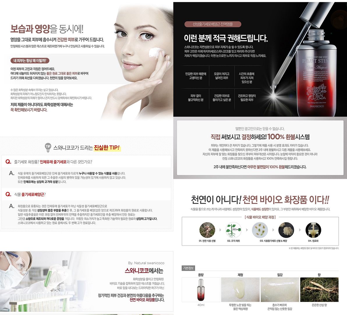 I roughly translated the description of this product and came up with the following ~ This is a solution for skin that has lost vitality and elasticity. It uses BioTechnology grafting, which combines existing natural raw materials with the biotechnology of Swanicoco, which will increase the nutrition and help improve skin issues more rapidly. This will improve your skin and reduce wrinkles by supplying nutrition using gentle and non-irritating ingredients. It contains collagen which will strengthen the skin elasticity and skin texture, while invigorating the skin layer. Protein peptides are effective for skin improvement and elasticity management and will strengthen the skin barrier function.