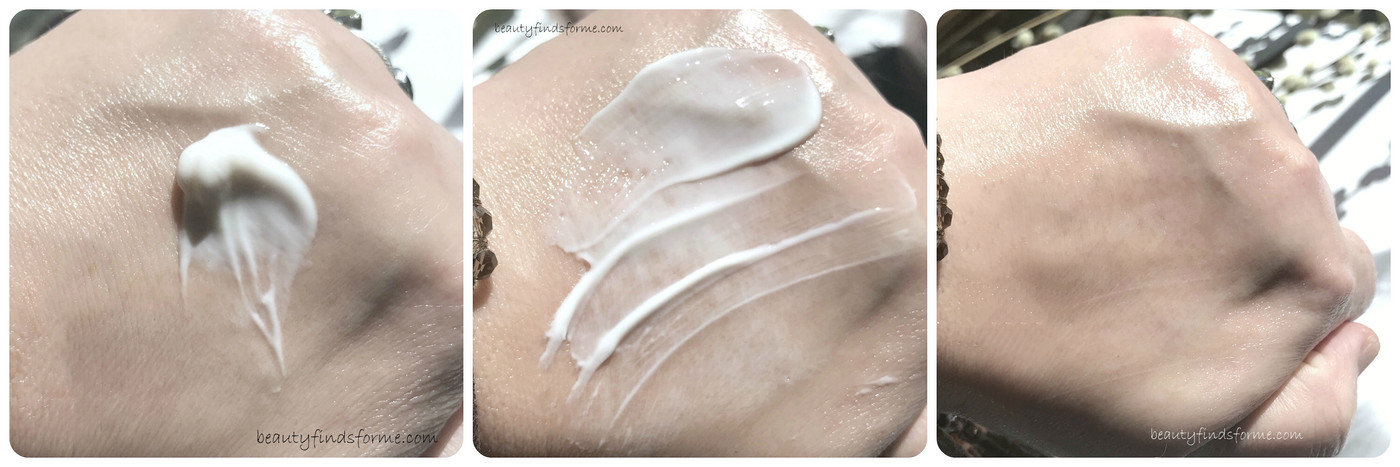 This has the same floral-herbal scent which I have learned to ignore by now ~ the CREAM THOUGH. It is an light-beige shade ~ I was a little shocked at the color, as I haven’t seen a sleeping mask pack that is this shade. This is a cream, but it is so slippery, slick and lightweight. Yes, lightweight ~ I have used heavier mask packs, believe me and this one isn’t heavy at all. In fact, if you are looking for a heavier texture like Sulwhasoo’s Concentrated Ginseng Cream, you will be disappointed by its texture. BUT …. it is VERY Moisturizing ~ with a capital M. The lightweight texture is deceiving as this is so moisturizing and I, with the oily, dehydrated skin, didn’t need a lot of it to cover my face.