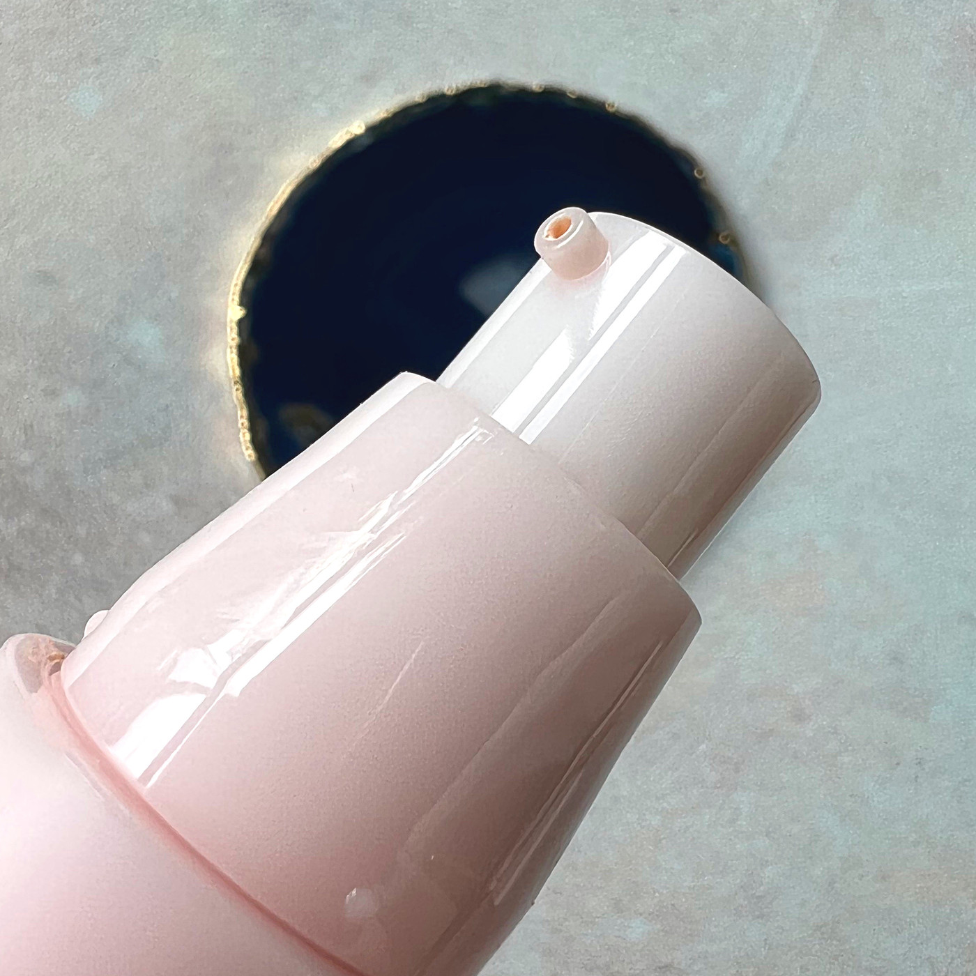 The packaging is the bomb! This is part of the new Moonshot packaging and I love it! It is a s pink plastic pump tube with a cap, which dispenses the cream very nicely. Alas, this only comes in ONE shade: Apricot Beige ~ a light beige shade that is good for light to medium-light skin tones ~ this works out well for me but is quite limiting for Moonshot.
