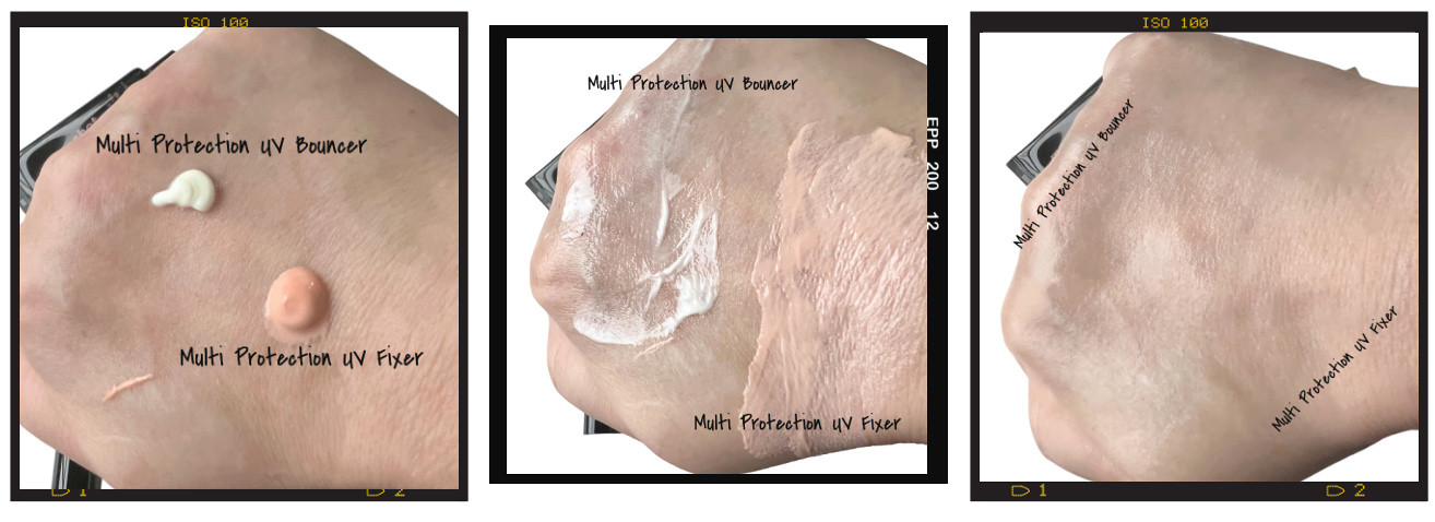 Multi Protection UV Bouncer SPF50+ PA+++ : UV Bouncer is more of a moisturizing primer than a concealing or blurring primer, as it is made up of more than 60% of moisturizing ingredients. . Made from Harrogate sparking water from the UK and Jeju oxygenated water, this water-based primer helps cools, moisturizes and refreshes the skin. This has four chemical UV filters: Homosalate(UVB) , Octocrylene (UVA/UVB), Octisalate (UVB) and Avobenzene (UVA/UVB) for invisible broad-spectrum protection from the rays.