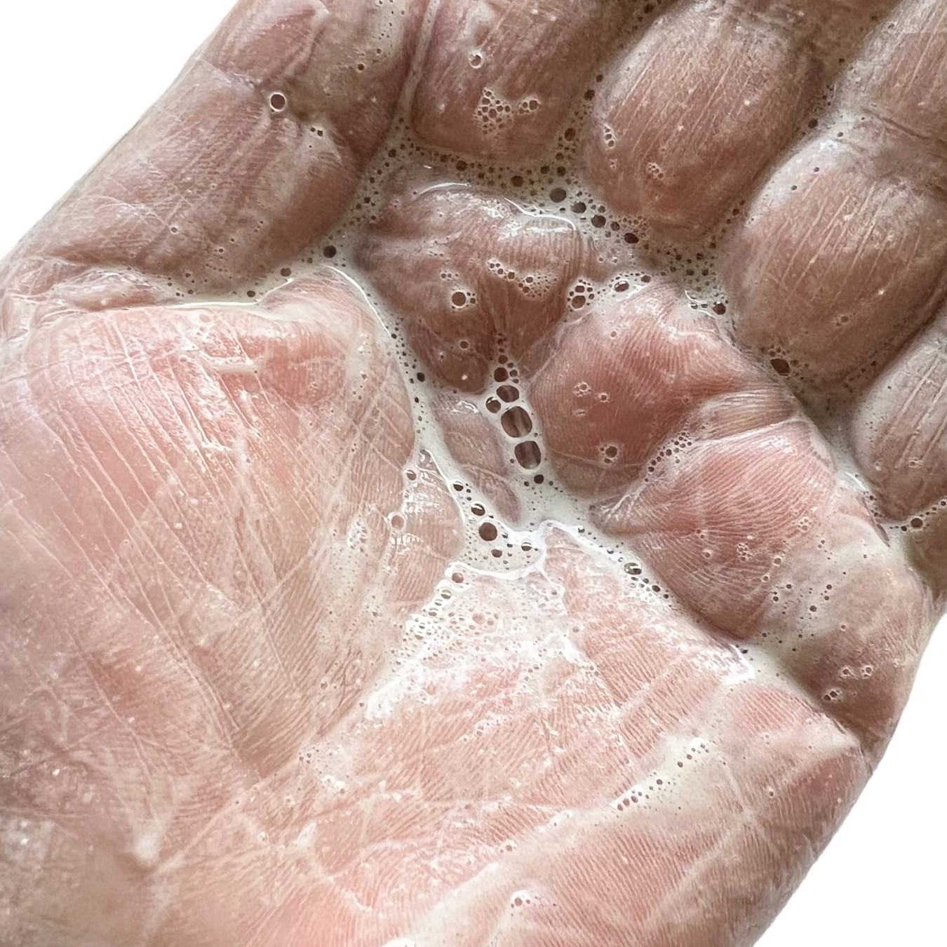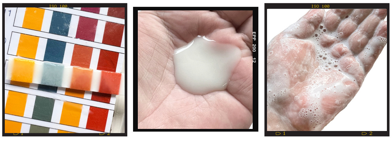 This cleanser does not cause any stinging or irritation on my skin and when I rinse it off, my skin does not feel dry or stripped. In fact, it feels like I just put on a thin layer of emulsion on my skin, as it not only feels smooth, but moisturized ~ I can feel a protective barrier of lipids on my skin, but it is not oily or greasy. It sounds gross and like my face isn’t clean, but that isn’t the case. My skin is quite clean and this light moisturized feeling is actually quite nice ~ I think this not just the cleanser, but also the natural oils in my skin! I did do a pH test on this cleanser and found that this cleanser really does take in account the pH level of the water you use ~ at home, I got a level of pH 8. I personally do not find that to be that high or even bad, as the results on my skin are positive.