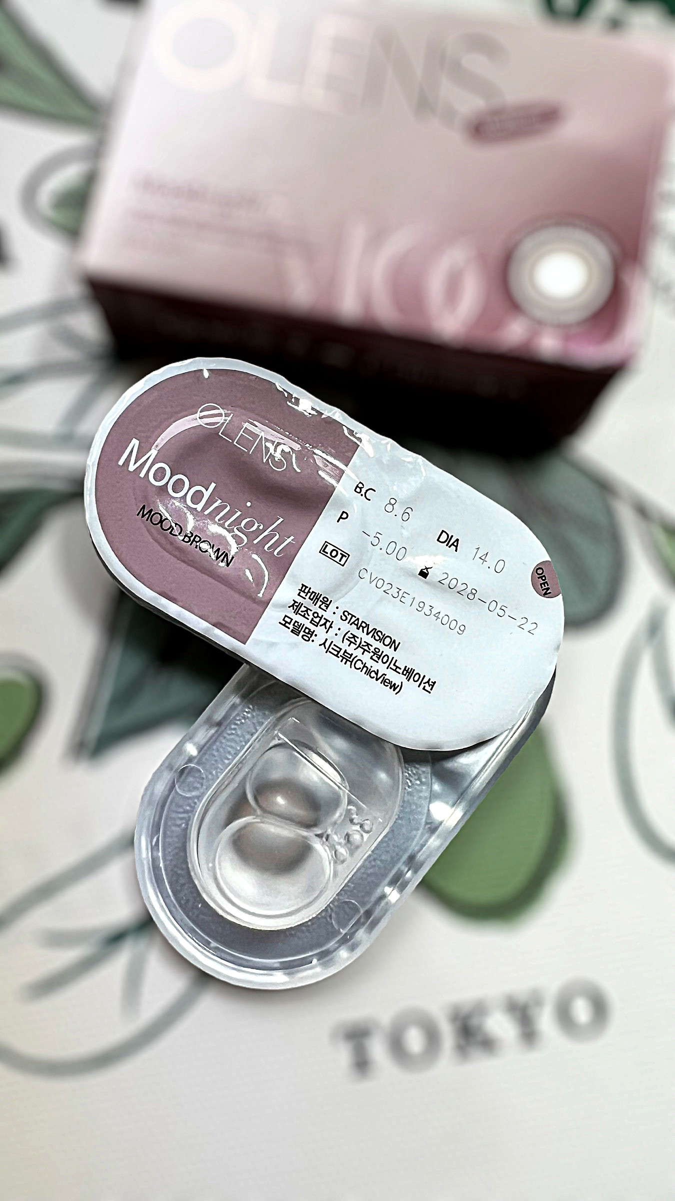 Mood Night has a soft edge line, very natural looking with a simple micro-dot design pattern. The shade is a soft ash brown that is gradated. These are also really nice and my go-to lens right now. I feel that they are very realistic and make my eyes look larger without making them look like doll eyes.