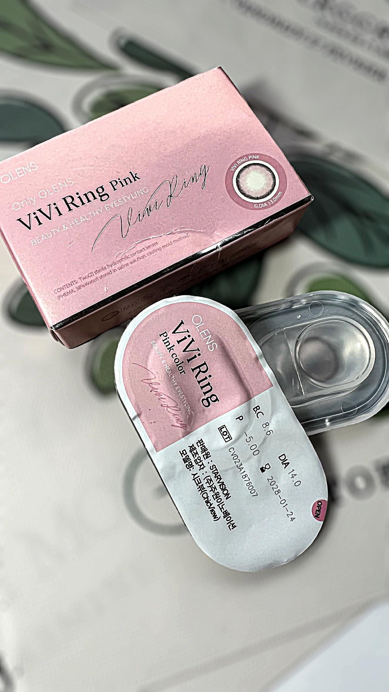 ViVi Ring has a softer edge line than Mood Ring, but because the pink shade, it still looks well defined with the brownish-pink edge line. My eyes don’t look pink, but they look brighter. These are the smallest enlarging lens, so they look more natural. The pink shade is dreamy and creamy looking and I love these. ViVi Ring does come in Monthly and they just released Toric, for astigmatism.